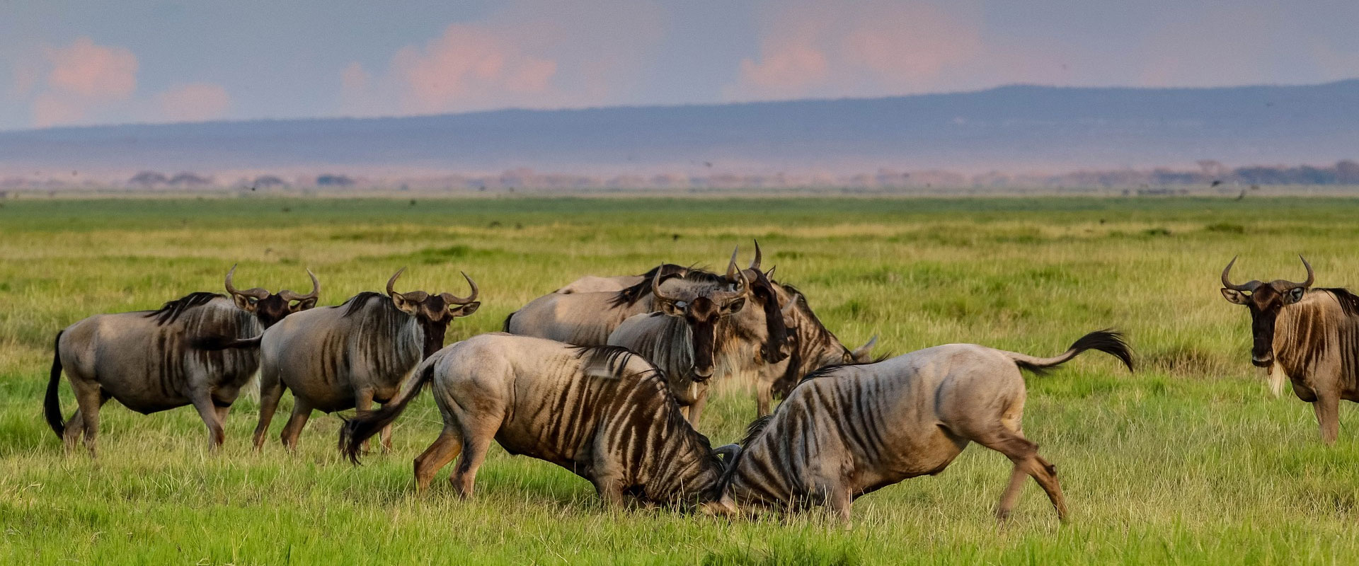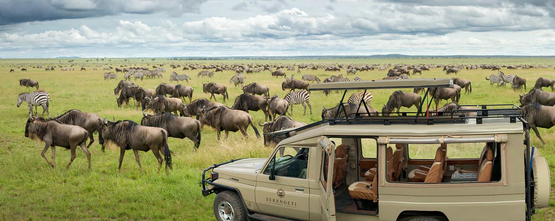 The Serengeti National Park is a large national park in northern Tanzania that stretches over 14,763 km2 (5,700 sq mi) It is located in eastern Mara Region and northeastern Simiyu Region and contains over 1,500,000 hectares (3,700,000 acres) of virgin savanna. The park was established in 1940. The Serengeti is well known for the largest annual animal migration in the world of over 1.5 million blue wildebeest and 250,000 zebra along with smaller herds of Thomson's gazelle and eland. The national park is also home to the largest lion population in Africa. It is under threat from deforestation, population growth and ranching.
